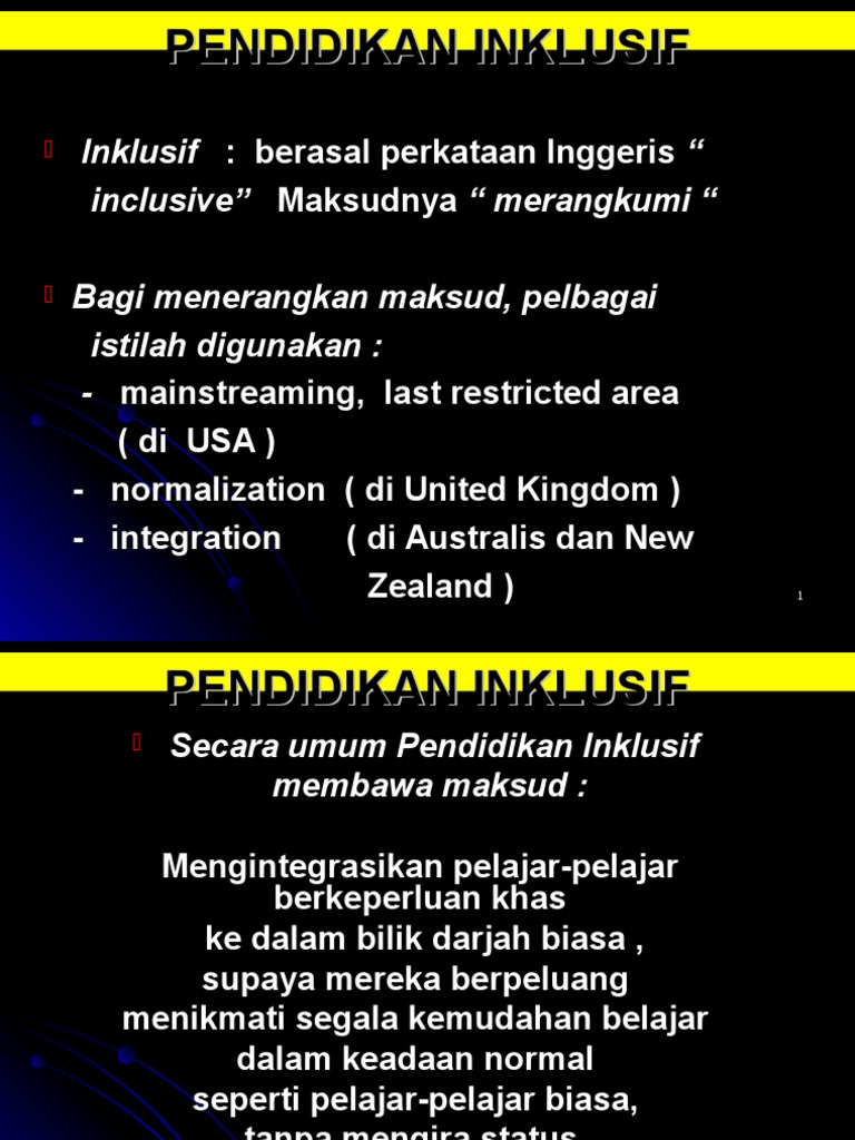 International conference on learner diversity 2010. Pendidikan malaysia boleh didapatkan dari sekolah tanggungan kerajaan, sekolah swasta atau secara sendiri. Keperluan pendidikan inklusif dalam program pendidikan arus perdana di malaysia. Menurut data unesco tahun 2009, ranking indonesia dalam penyelenggaraan pendidikan inklusi bagi anak berkebutuhan khusus atau abk terus mengalami kemerosotan. Memasukkan murid pendidikankhas ini ke dalam kelas aliran perdana tidaklah mudah jika dilihat sekadar luaran sahaja.